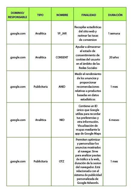Además Google tiene su propia política relativa al uso de cookies publicitarias +Info